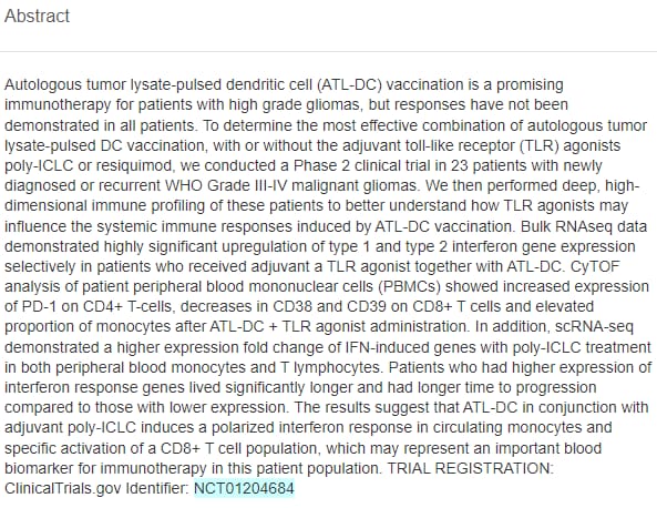 The head image is from Robert Prins’ latest video showing some of the authors and researchers from the DCVax-L + poly-iclc combo trial.